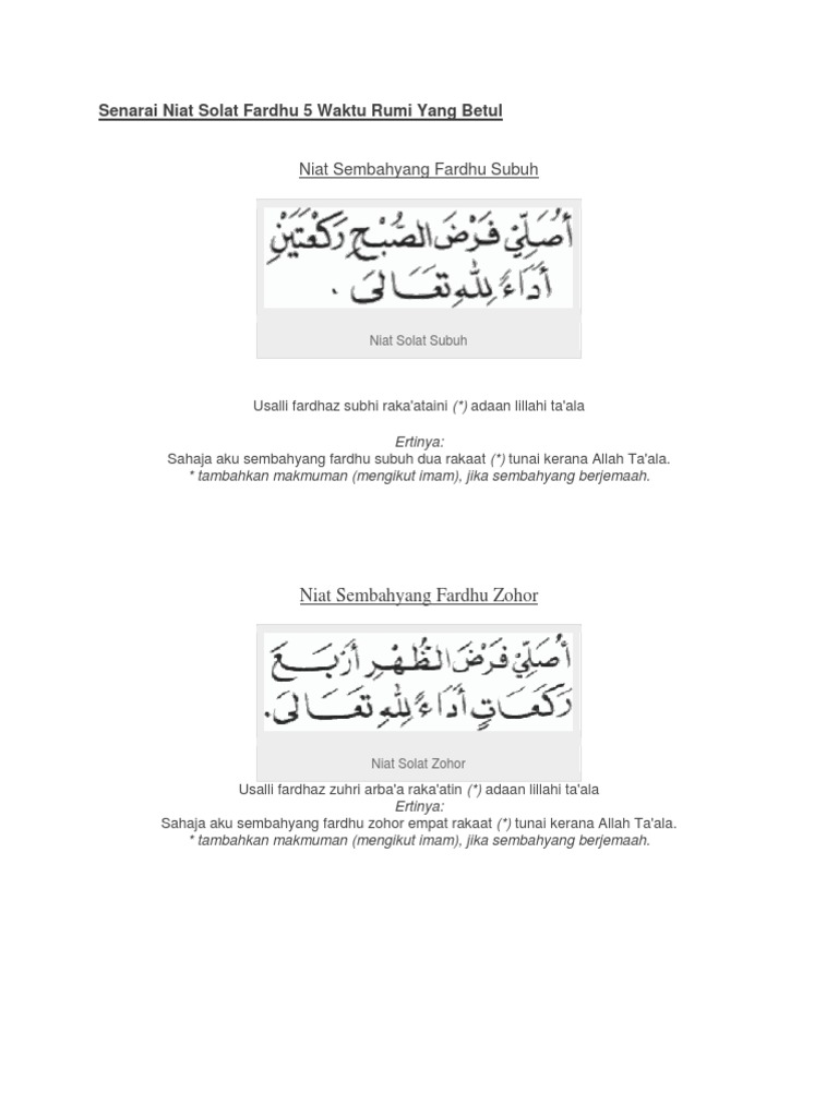 Lafaz niat solat 5 waktu serta jumaat rumi dan jawi selain solat lima waktu yang dituntut ditunaikan pada setiap hari terdapat satu lagi kewajipan terhadap kaum adam iaitu solat jumaat. Jakarta mimbar niat sholat 5 waktu lengkap dengan bacaan dan artinya sholat menjadi salah satu tiang agama. Bagi kawasan atau negeri yang tidak hilang cahaya tersebut kawasan seperti kutub maka dikira kadar panjang atau tempoh yang sama bagi kawasan atau negeri yang berhampiran yang mengalaminya. Usalli fardhal maghribi salasa raka atin adaan lillahi ta ala.