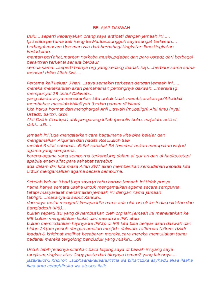 Para sahabat ra telah sukses dan jaya dalam mengamalkan agama secara sempurna karena mereka memiliki sifat sifat dasar yang terkandung dalam enam sifat sahabat yang meliputi 1. Sholat khusyu dan khudlu 3. Enam sifat sahabat ra tersebut bukan merupakan wujud agama yang sempurna karena agama yang sempurna terkandung dalam al qur an dan al hadits tetapi apabila enam sifat para sahabat tersebut ada dalam diri kita maka allah swt akan memberikan kemudahan kepada kita untuk mengamalkan agama secara. Enam sifat sahabat ra tersebut bukan merupakan wujud agama yang sempurna karena agama yang sempurna terkandung dalam al qur an dan al hadits tetapi apabila enam sifat para sahabat tersebut ada dalam diri kita maka allah swt akan memberikan kemudahan kepada kita untuk mengamalkan agama secara sempurna.