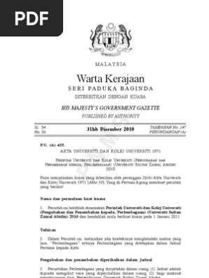 Akta universiti dan kolej universiti 1971 pdf. Akta universiti dan kolej universiti 1971 suatu akta untuk membuat peruntukan bagi menubuhkan menyelenggara dan mentadbirkan universiti dan kolej universiti dan bagi perkara lain yang berkenaan dengannya. To find out more including jolej to control cookies see here. Pelajar tersebut dijatuhkan hukuman terlebih dahulu oleh pihak universiti iaitu sama ada dengan menggantung atau membuangnya daripada pengajian sebelum mahkamah membuktikannya bersalah. Akta universiti dan kolej universiti 1971.