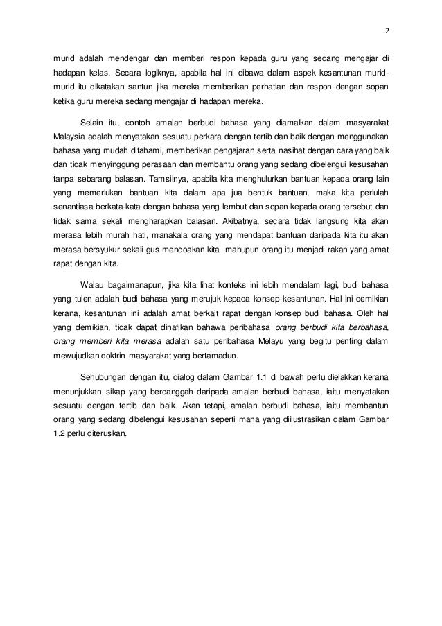 Amalan berbudi bahasa contoh karangan. Contoh contoh amalan masyarakat malaysia menunjukkan ciri ciri berbudi bahasa sentiasa berucap terima kasih masyarakat malaysia sentiasa mengucapkan terima kasih kepada orang yang menolong mereka sebagai contohnya seperti apa yang ditayangkan dalam televisyen kanak kanak telah mengucapkan terima kasih kepada orang yang membantu mengiringi mereka dan mengajar mereka. Jelaskan kepentingan menjaga kesihatan diri. Dalam menanam amalan berbudi bahasa dalam diri setiap individu. M masyarakat yang berbudi bahasa akan saling menghormati tidak kira apa apa jua warna kulit ataupun status individu tersebut.