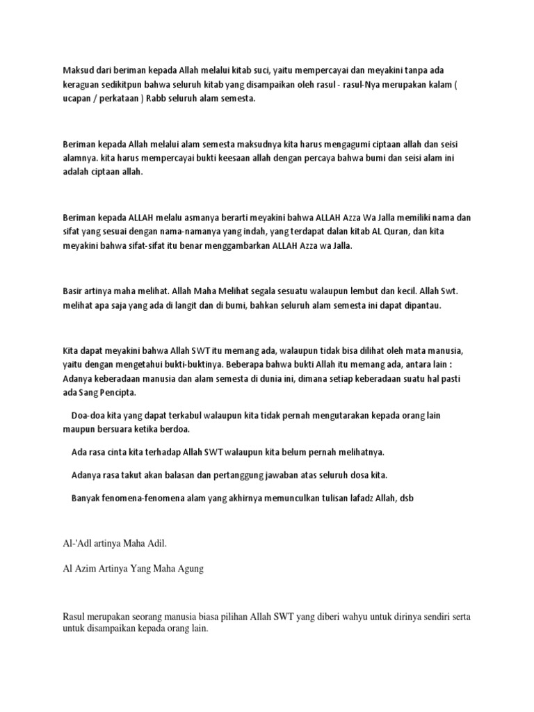 Apa maksudnya beriman kepada allah melalui kitab suci jelaskan. Maka dari itu manfaat yang diperoleh secara pribadi ketika percaya kepada allah swt tentunya juga mempengaruhi kehidupan bermasyarakat baca. Apa maksudnya beriman kepada allah melalui alam semesta jelaskan. Bagaimana kita bisa yakin bahwa allah itu ada padahal allah ti dak bisa dilihat oleh mata manusia.