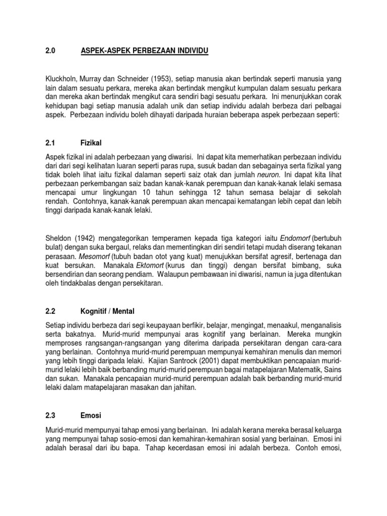 I dan iv sahaja. Aspek aspek perbezaan individu fizikal emosi personaliti sahsiah bangsa bahasa.