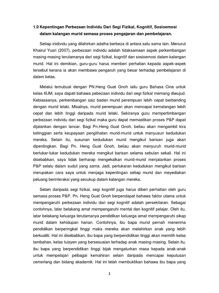 I ii dan iii sahaja. Perbezaan individu nordin tahir ipgm kampus ipoh 2. I ii dan iv sahaja. Ini bermakna setiap murid di dalam bilik darjah adalah unik dan berbeza di antara satu sama lain.