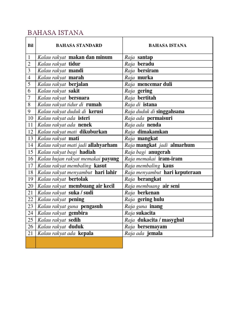 Bahasa Istana Dan Maksudnya Upsr