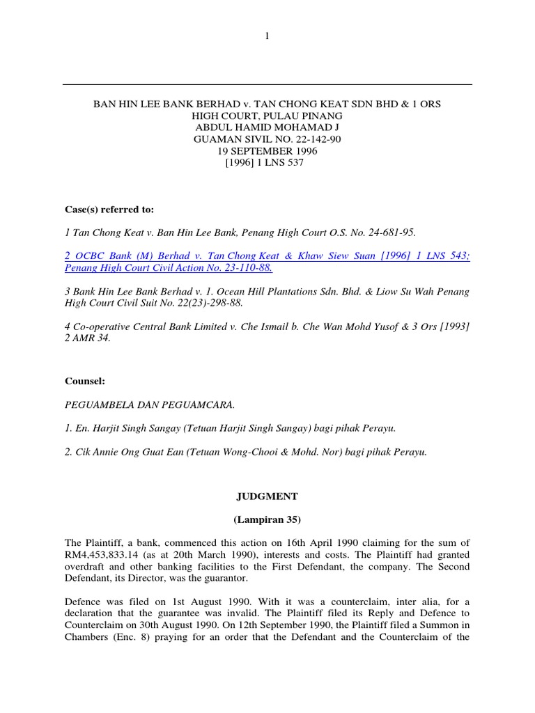 Since its inception in 1974 we have been transforming to become one of the leading companies in the field of construction in malaysia. The recent case of ban hin lee bank berhad v applied magnetics m sdn bhd in liquidation 2003 5 clj 1 vividly illustrates how an amendment to the employment act 1955 works to the advantage of unpaid employees in liquidation proceedings. Online ordering payment and delivery facility for sale of commemorative currency issued by bank negara malaysia. Bank agong apex bank bank of america asia hk limited.