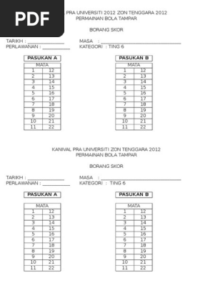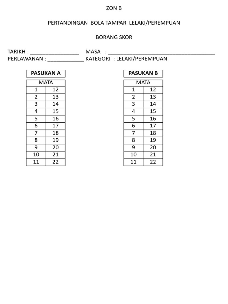 Pada setiap tahun majlis sukan sekolah sekolah derah petaling telah mengadakan kejohanan bola tampar daerah petaling utama. Sentuhan bola dengan objek luar atau dengan lantai 18. Borang skor bola tampar kanival sukan 2011 free download as excel spreadsheet xls pdf file pdf text file txt or read online for free. Mengisi borang skor mengikut peraturann dan bekerjasama dengan referi kedua.