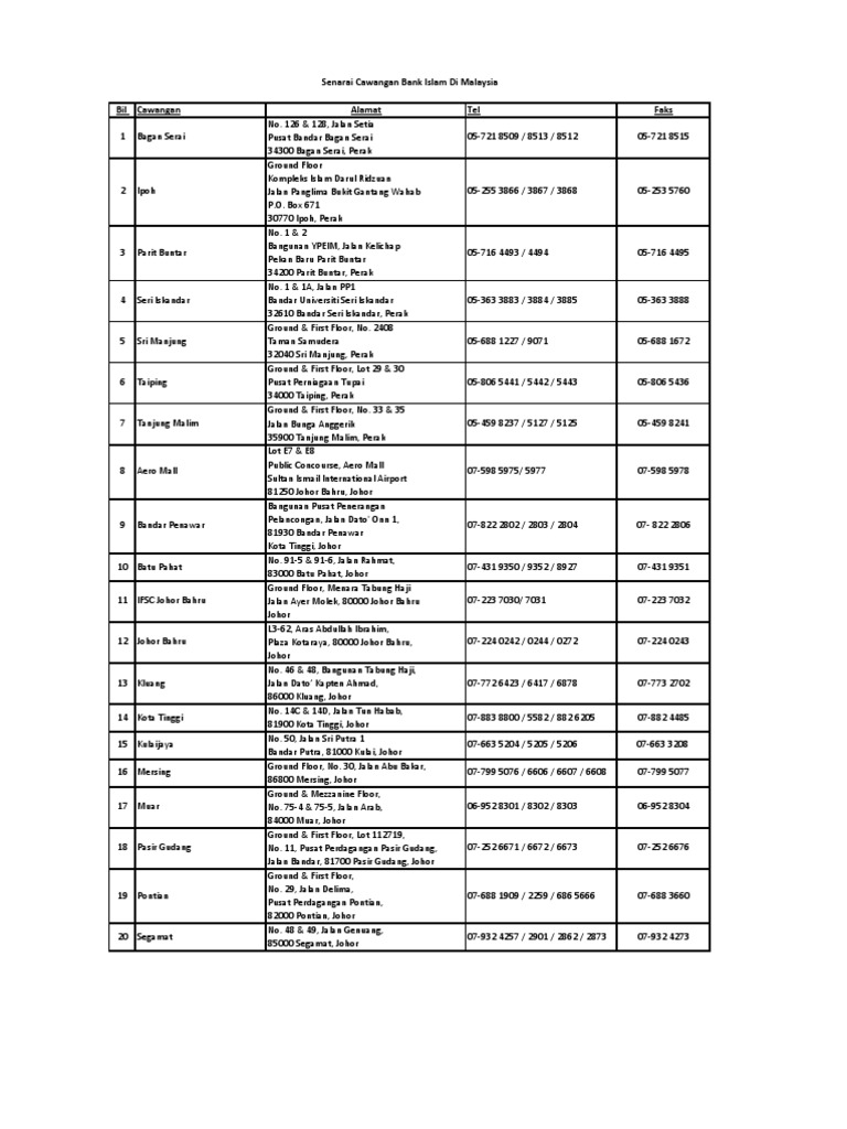 03 2240 2020 0296. Menara bank islam ground floor menara bank islam no. Telephone 60 3 6091 7652 60 3 6091 7657. Maklumat cawangan bank islam negeri selangor beserta alamat lokasi nombor telefon dan nombor faks.