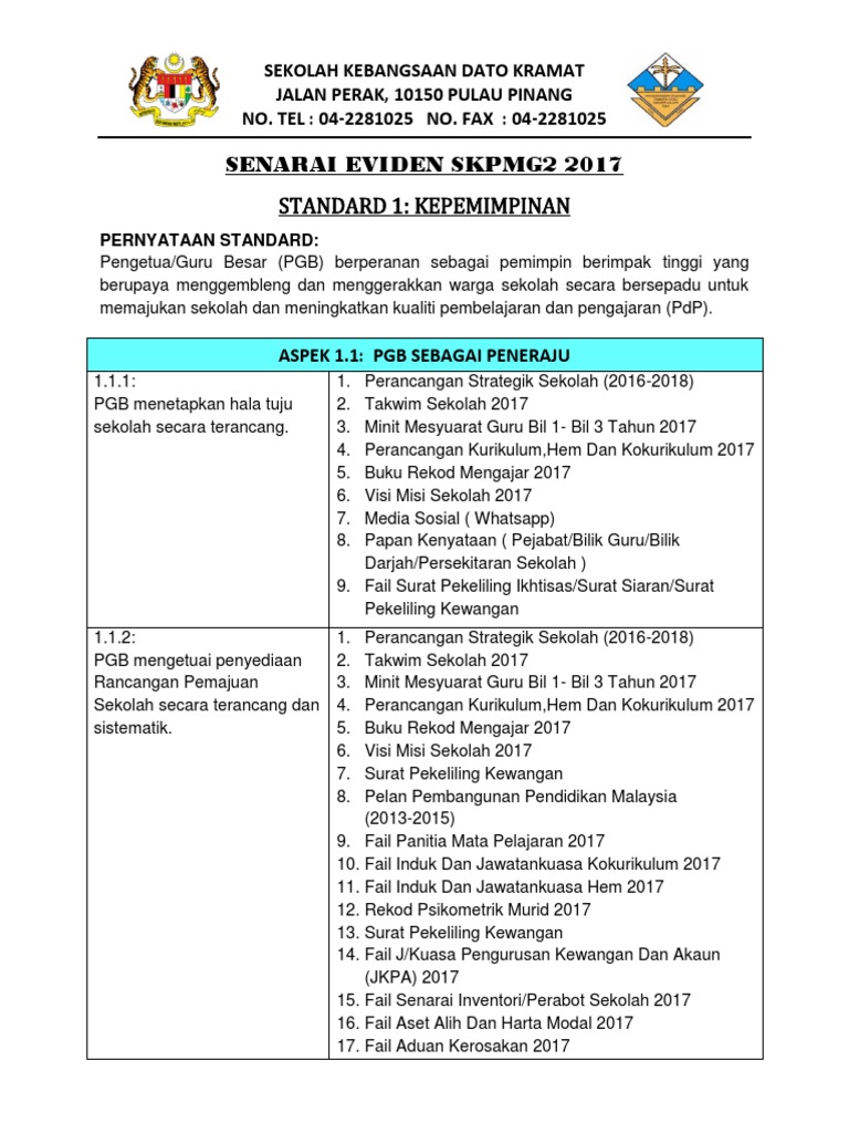 Contoh evidens skpmg2 standard 3 1. Contoh eviden standard 3 3. Senarai semak status pengisian portal. Evidens skpmg2 standard 3 1 pengurusan kurikulum sekarang ini di hujung tahun ramai guru data dan guru ict pastinya sedang sibuk memasukkan data maklumat sekolah ke dalam sistem nkra. Ucapan aluan guru besar di kejohanan sukan tahunan kali ke 43.