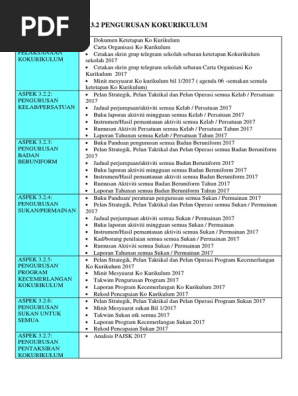 Membuat ketetapan berkaitan pelaksanaan kokurikulum dengan mendokumen menyebar luas dan menyemak semula ketetapan serta membuat tindakan susulan dengan mekanisme yang sesuai secara menyeluruh jelas mengambil kira keperluan sekolah dan mematuhi arahan. Evidens skpmg2 semua standard 2. Koleksi senarai evidens yang boleh digunakan sebagai bahan bukti bagi skpmg2 standard 3 2 pengurusan kokurikulum. Ketetapan pelaksanaan kokurikulum dibuat secara sistematik.