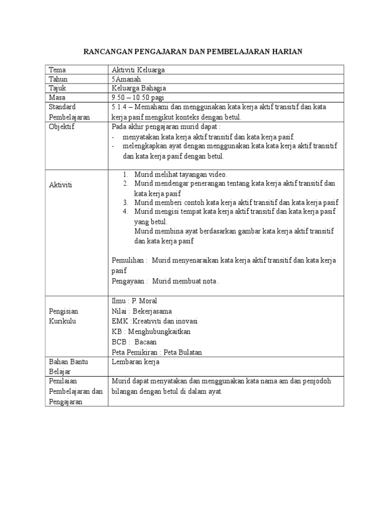Contoh kata kerja pasif tahun 5. Jika terdapat kata bantu sedang telah mesti dan lain lain dalam ayat pasif diri ketiga ia perlu diletakkan di hadapan kata kerja pasif. V kata kerja pasif dengan kata kena. 5 ayat pasif diri pertama ialah ayat yang kata kerjanya tidak berawalan men dan didahului kata ganti diri pertama seperti aku kami kita saya dan sebagainya 6 kata ganti diri pertama aku boleh disingkatkan menjadi ku dan hendaklah dicantumkan pada kata kerja pasif. Kata kerja pasif ialah kata kerja yang berasal daripada kata kerja transitif tetapi yang tidak berawalan men.
