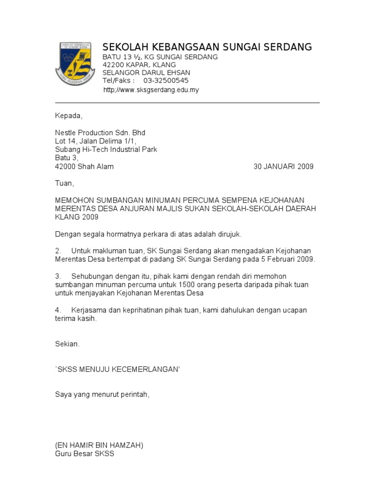 Contoh Surat Rasmi Memohon Kebenaran Merentas Negeri