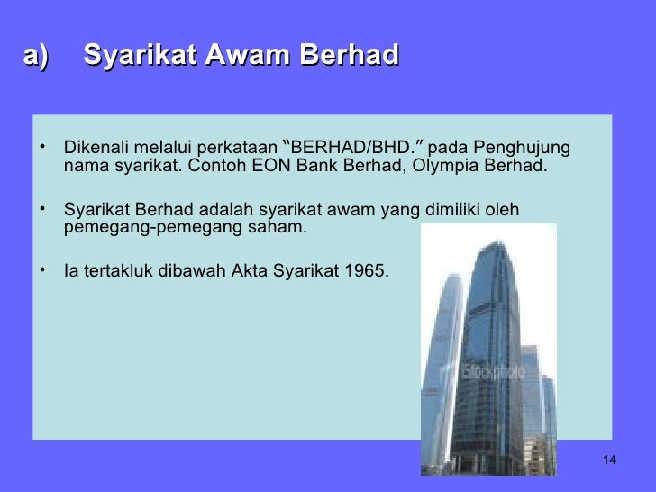 Contoh syarikat awam berhad di malaysia. Selain itu minimum 2 orang pemegang saham juga diperlukan bagi melengkapkan proses penubuhan. Berada di tangga pertama syarikat awam terbesar di malaysia adalah maybank berhad yang juga berada di tangga ke 390 dunia. Tahukah anda berdasarkan laporan world economic outlook april 2017 oleh international monetary fund imf malaysia merupakan negara ke 36 yang mempunyai nilai kadar dalaman negeri kasar gdp nominal tertinggi didunia. Ekonomi malaysia pada 2014 2015 ialah salah satu yang paling kompetitif di asia kedudukan ke 6 di asia dan ke 20 di dunia lebih tinggi daripada negara negara seperti australia perancis dan korea selatan.
