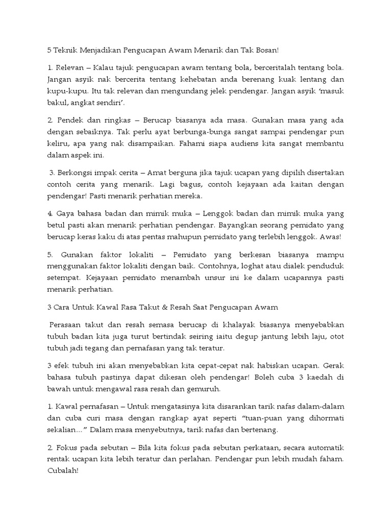 Ada tips elak fobia juga. Contoh teks pengucapan awam yang pendek ringkas dan menarik. Berikut tips sbg panduan bagi pemula dalam dunia assignment atau esei yg mesti ada 3 perkara pengenalan isi kandungan dan kesimpulan penutup.