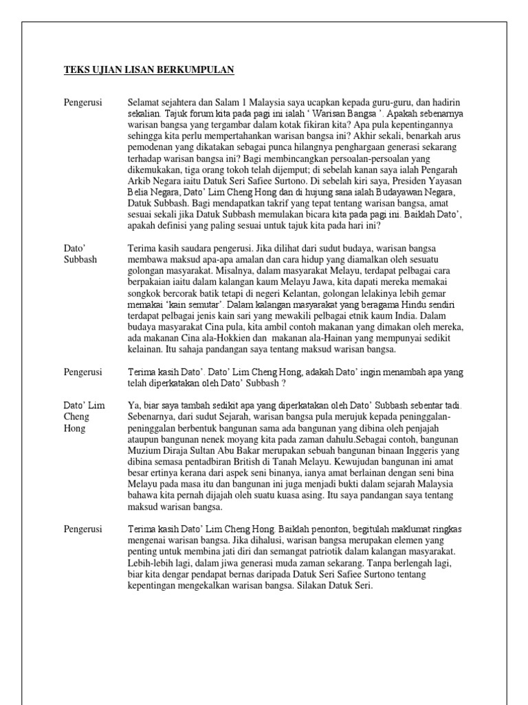 Contoh Teks Ujian Lisan Bahasa Melayu Tingkatan 4 Berkumpulan