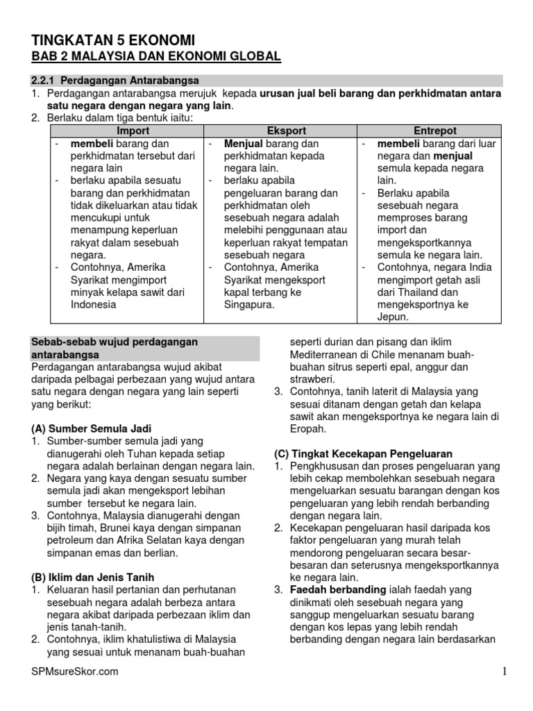 Ekonomi tingkatan 5 bab 2 perdagangan antarabangsa. Pedagangan antarabangsa perdagangan antarabangsa ialah kegiatan mengeksport dan mengimport barangan antara sebuah negara dengan negara lain. Bab 4 firma sebagai pengeluar. Bab 4 perniagaan antarabangs a 2. Nota nota penting bagi topik tingkatan 5 ekonomi asas bab 3 perdagangan antarabangsa 3 1.