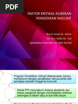 1 1 1 pengenalan kepada program pendidikan inklusif ppi adalah pendidikan untuk mbk seperti murid yang mempunyai masalah pendengaran masalah penglihatan masalah tahap kebolehtuturan keterancat akal serta fizikal. Bagi mengurangkan impak kesukaran di. Alatan bantuan pendengaran menggunakn kiu visiual. Pendidikan inklusif isu cabaran dan langkah mengatasi faktor kritikal kejayaan pendidikan inklusif 1.
