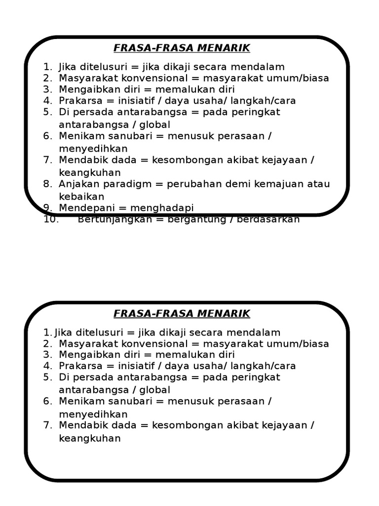 Atau mencari isi isi penting dan idea yang menarik untuk diolah dalam penulisan karangan masing masing. Frasa frasa menarik yang boleh digunakan dalam penulisan karangan pelajar.