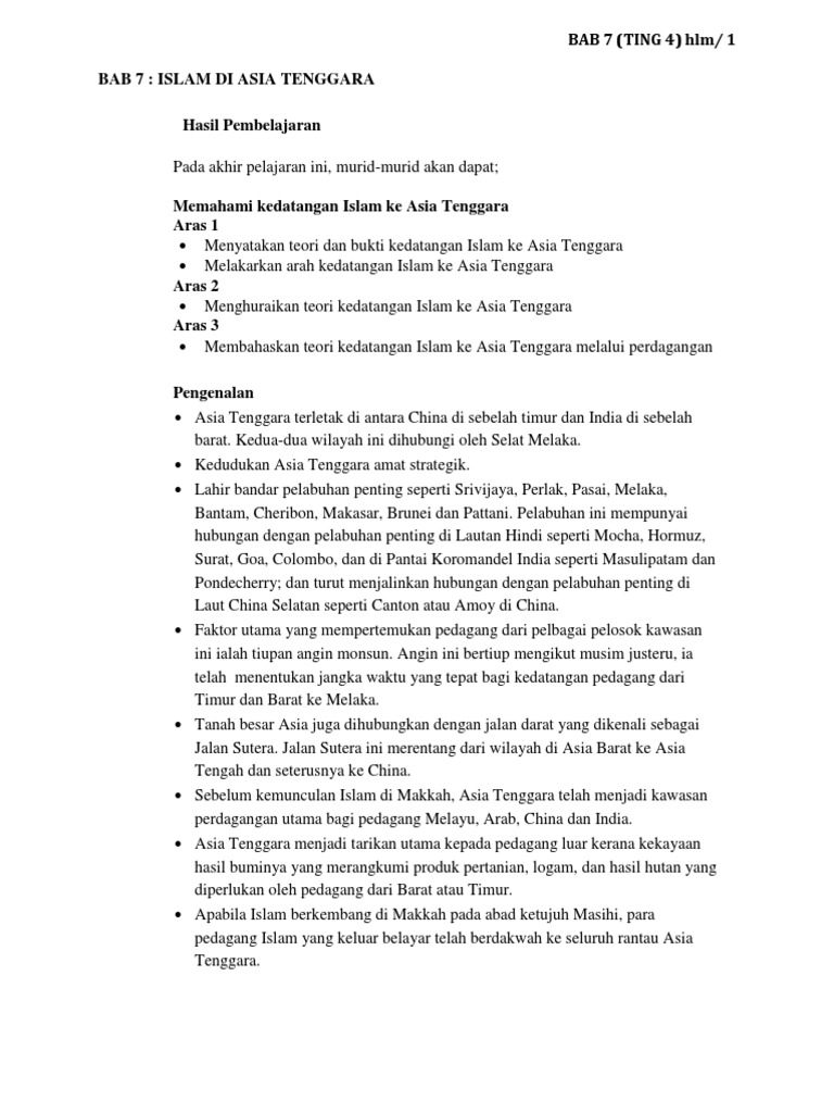 Islam di asia tenggara kertas 3. Bab tajuk ms 1 tamadun awal manusia 2 2 peningkatan tamadun 23 3 tamadun awal di asia tenggara 35 4 islam dan penyebarannya di makkah 43 5 kerajaan islam di madinah 52 6 pembentukan kerajaan islam dan sumbangannya 61 7 islam di asia tenggara 70 8 pembaharuan dan pengaruh islam di malaysia sebelum kedatangan. Merujuk tema 8 huraian sukatan pelajaran dan buku teks sejarah tingkatan 4 bab 7 berdasarkan tajuk di atas calon dikehendaki melaksanakan tugasan berikut. Tajuk 8 4 islam di asia tenggara merujuk tema 8 huraian sukatan pelajaran dan buku teks sejarah tingkatan 4 bab 7 berdasarkan tajuk di atas calon dikehendaki melaksanakan tugasan berikut. 8 x 1m mak.
