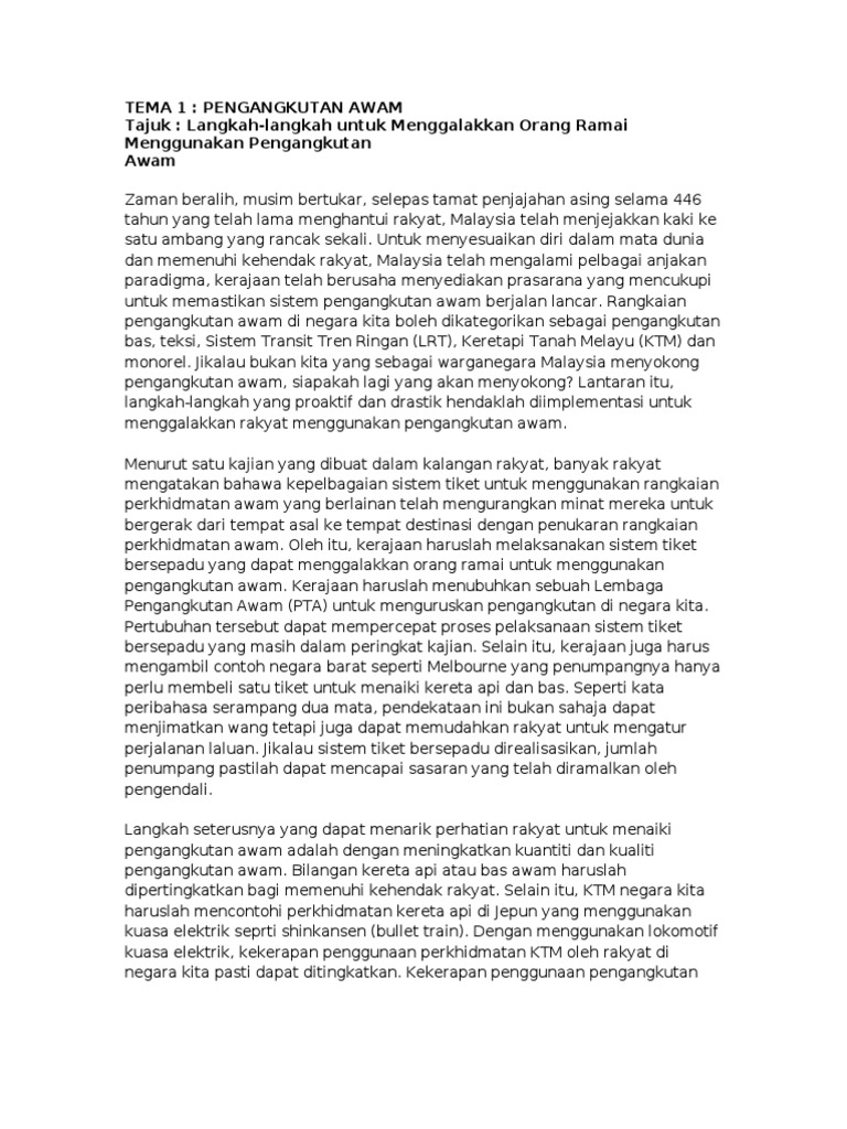 Karangan Langkah Langkah Meningkatkan Kualiti Pengangkutan Awam