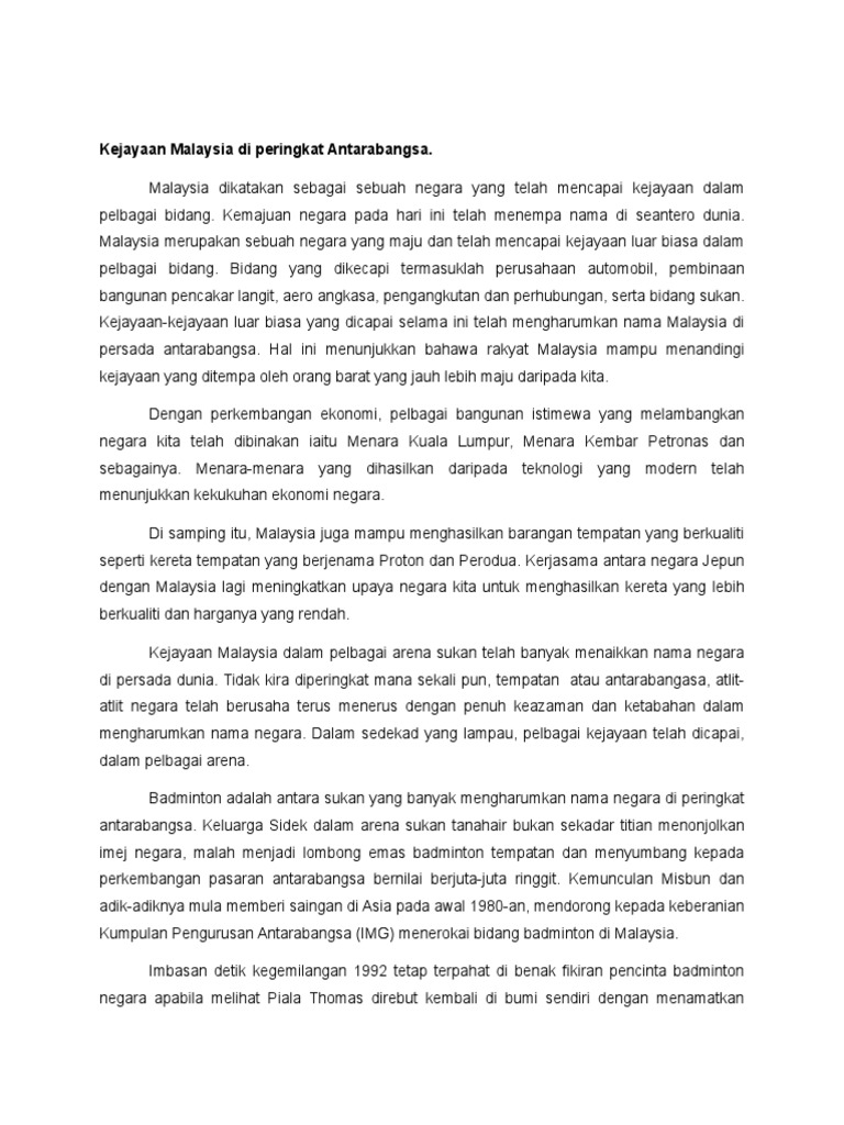 Malaysia merupakan sebuah negara yang maju dan telah mencapai kejayaan luar biasa dalam pelbagai bidang. Kejayaan malaysia dalam sektor ekonomi 5. Kemajuan negara pada hari ini telah menempa nama di seantero dunia. Berdasarkan pengetahuan anda mengapakah negara malaysia dipandang tinggi oleh masyarakat antarabangsa 10 markah mencipta menjana idea untuk menjadikan malaysia sebagai sebuah negara maju.