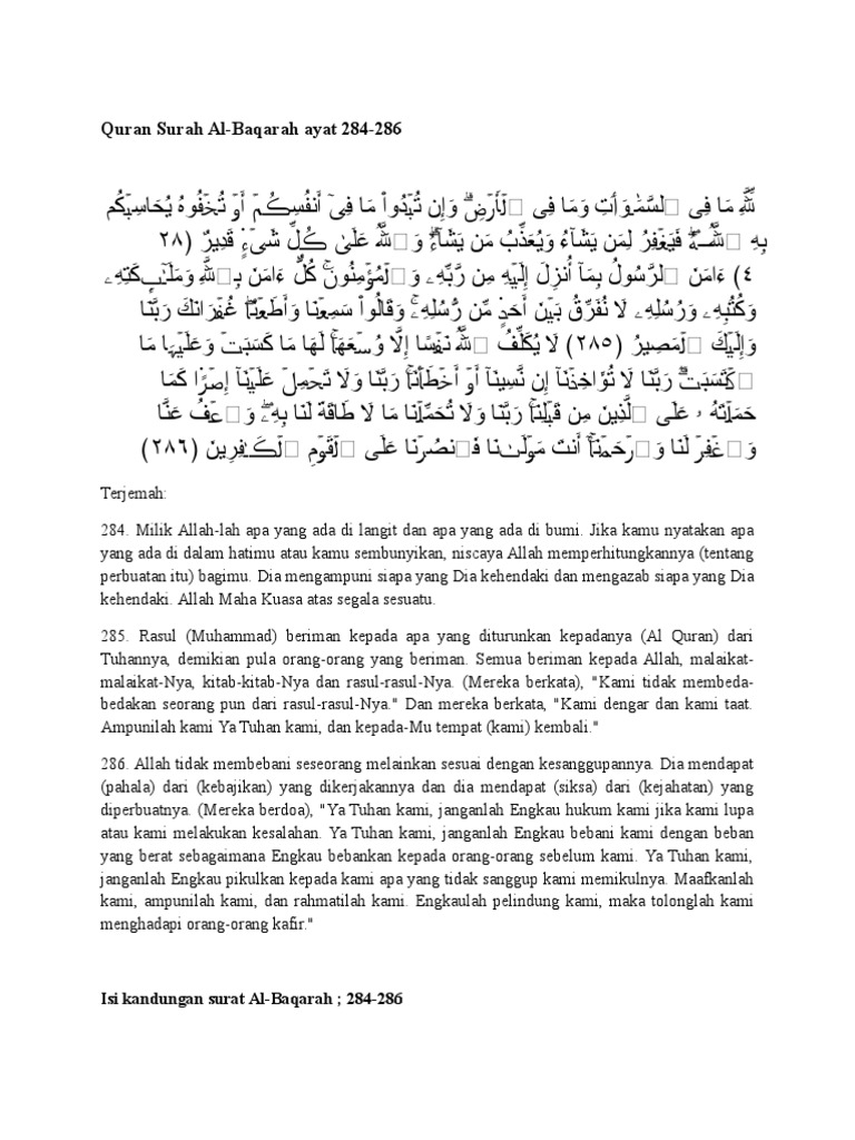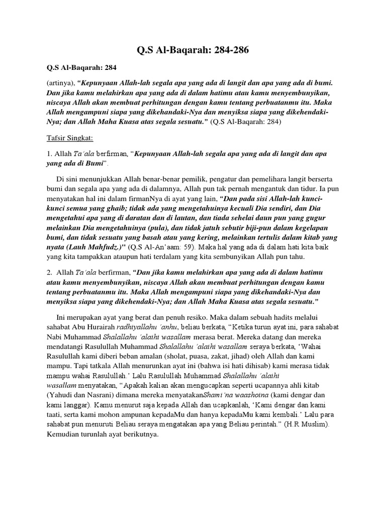 Surah al baqarah ayat 284 286 maka syaitan tidak akan masuk kerumahnya pada malam itu. 284 286 of surah al baqarah by imam as saadi 18 sunday jul 2010 posted by umm muawiyah in articles and books as saadi ayah no. Tafsir of ayahs no.
