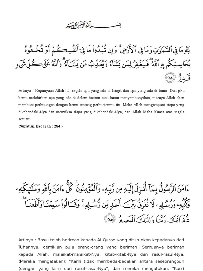 Kelebihan Surah Al Baqarah Ayat 284 286