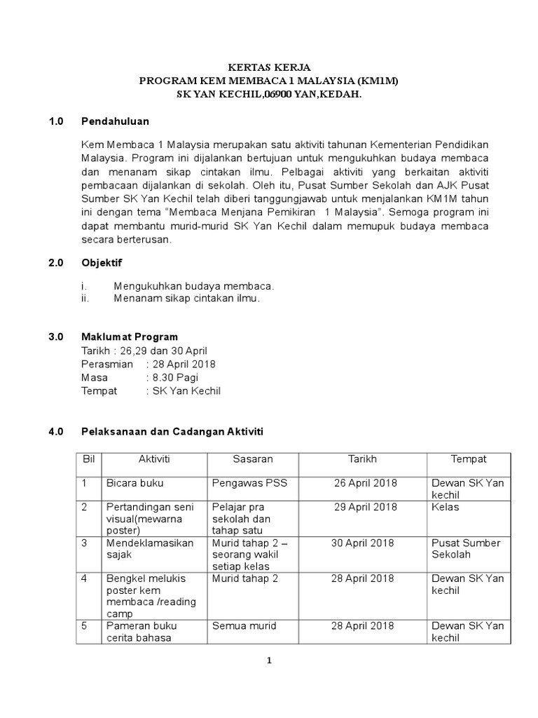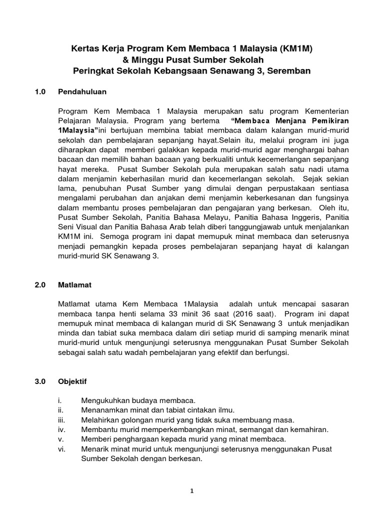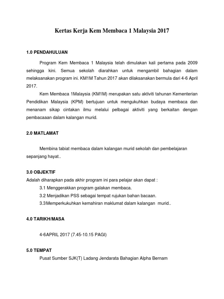 Kertas kerja kem membaca 1 malaysia 2017. Newer post older post home. Kertas kerja program kem membaca 1 malaysia 2015 km1m 2015 peringkat sekolah kebangsaan sempang melaka pendahuluan kem membaca 1 malaysia km1m merupakan satu aktiviti tahunan kementerian pendidikan malaysia. At june 17 2014.