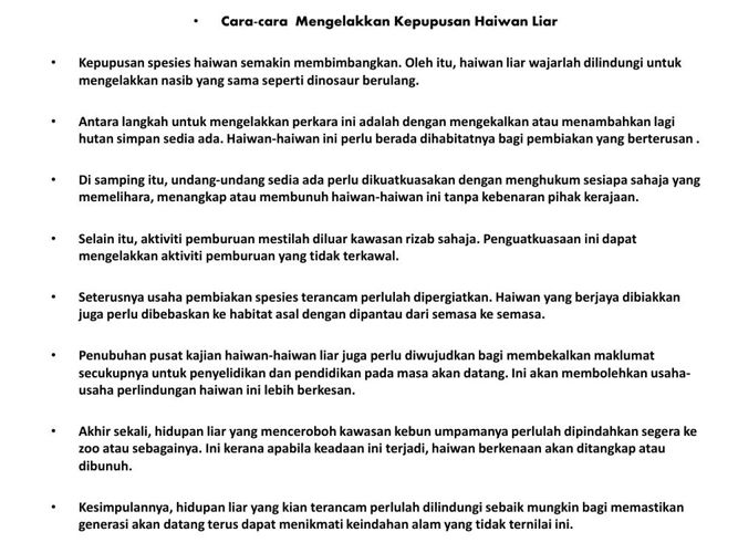 Apabila tiada lagi harimau untuk mengawal populasi rusa dan kijang haiwan haiwan ini akan terus membiak dan mampu merosakkan kawasan rumput di sekelilingnya. Blog ini akan membincangkan tentang punca punca kepupusan flora dan fauna kesan kesan kepupusan dan langkah langkah yang dianggap sesuai untuk mengatasi masalah ini. Related posts to contoh karangan laporan kepupusan flora dan fauna contoh karangan laporan kepupusan flora dan fauna 2017 12 28t01 13 00 08 00 rating. Makaro soft share to.