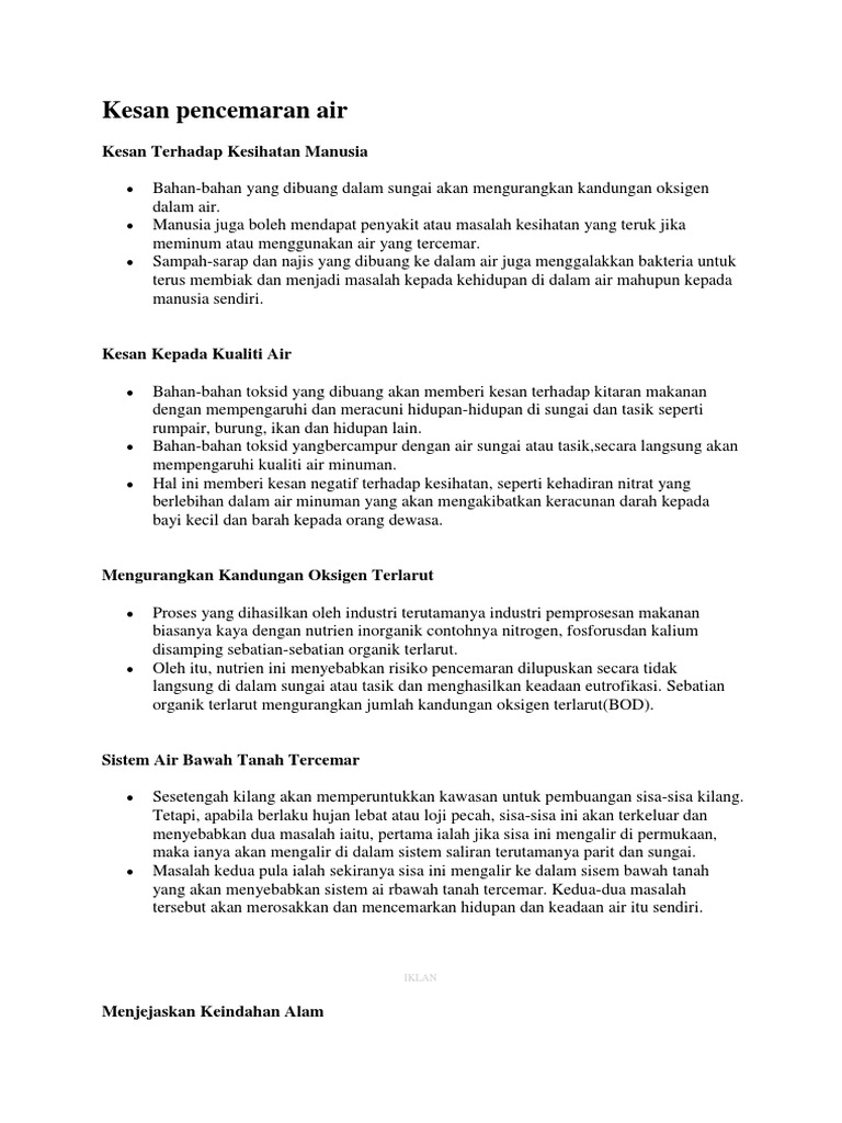 Kesan terhadap manusia a kesihatan terjejas kesan utama pencemaran udara adalah ke atas kesihatan manusia. Kesan terhadap manusia a kesihatan terjejas kesan utama pencemaran udara adalah ke atas kesihatan manusia. Kesan kesan pencemaran alam sekitar air pencemaran air adalah salah satu penyebab penyakit kronik. Terdapat banyak kesan buruk yang akan menimpa manusia jika langkah langkah kawalan segera tidak diambil untuk menangani pencemaran.