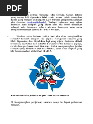 Pertandingan dikir barat alam sekitar. Memang benar kebanyakan barang yang boleh dikitar semula lazimnya boleh dibuang di sini dan seterusnya dikumpulkan dan dibawa ke pusat kitar semula. 2 memupuk sikap berjimat cermat. Kehidupan di zaman milenium ini sungguh berbeza berbanding 50 tahun dahulu kini populasi penduduk pembangunan dan kemajuan semakin meningkat dengan pantasnya.