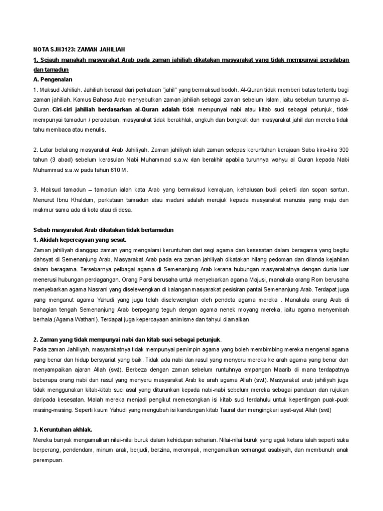 Sejarah tingkatan 1 bab 8 tamadun islam dan sumbangannya. Masa sebelum kedatangan islam dikenal dengan zaman jahiliyah. Pada saat itu masyarakat arab memiliki kebiasaan buruk seperti minum minuman keras berjudi berzina dan menyembah berhala. Masa sebelum islam khususnya kawasan jazirah arab disebut masa jahiliyyah.