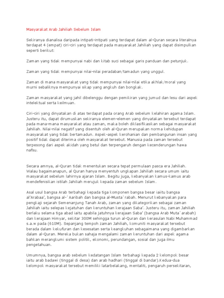 Latar belakang masyarakat arab jahiliah sebelum kedatangan islam. Mereka pada umumnya hidup berkabilah. Pada masa sebelum kedatangan islam di arab dikenal dengan zaman jahiliyah. Latar belakang masyarakat arab sebelum kedatangan islam masyarakat arab terdiri daripada dua kelompok masyarakat iaitu masyarakat hadari dan masyarakat badwi. B y x 2 g m 1 p f latar belakang masyarakat arab sebelum kedatangan islam e c maksud arab jahiliyah arab.