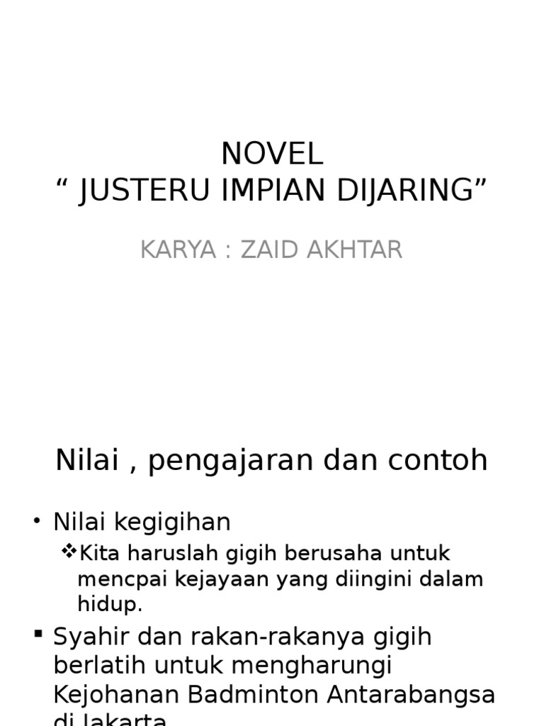 Novel justeru impian di jaring. Tempat pertandingan kejohanan badminton antarabangsa. Berikut adalah novel komsas tingkatan 3 untuk rujukan tema sinopsis keseluruhan dan setiap bab watak perwatakan persoalan plot latar tempat latar masa latar masyarakat nilai pengajaran. Sinopsis bab 1 sesi latihan masih berbaki 15 minit namun kompleks sukan semakin lengang.