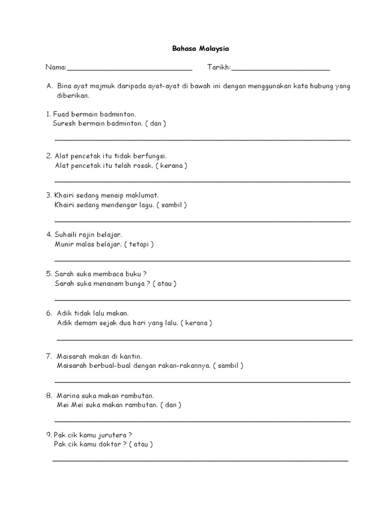 Lagu 2 latihan bahasa melayu 16 latihan bm tahun 1 12 nota dan latihan bahasa melayu 19 pantun 4 pengacaraan 20 pengumuman 1 persembahan 7 puisi 69 rekreasi 1 about us. Unknown 13 june 2016 at 01 18. Latihan ayat tunggal 1. Mohon copy untuk latihan.