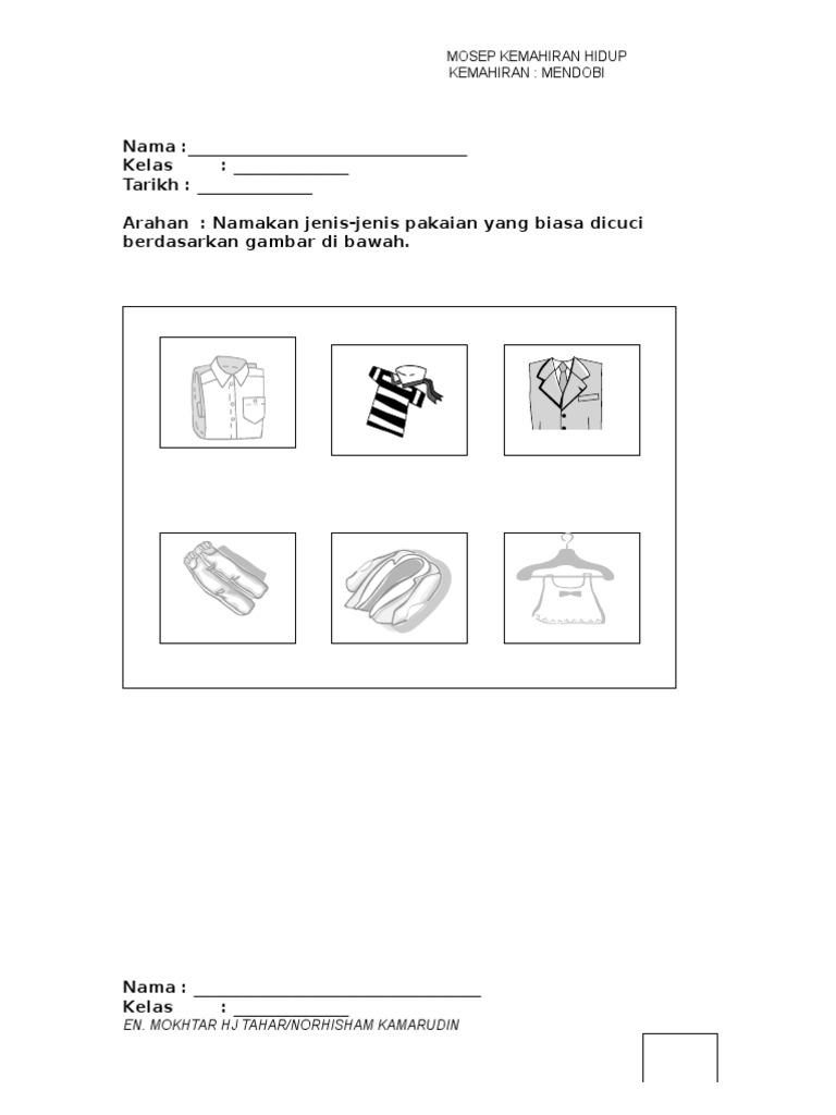 Contoh lembaran kerja tajuk kebersihan pakaian. Namakan cara cara memasak ubi ketang. Soalan kemahiran manipulatif 2013 medium doc. Warnakan gambar di bawah mengikut warna yang telah ditetapkan.