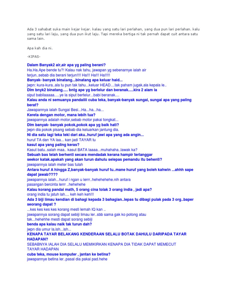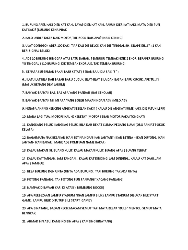 Untuk pengetahuan anda itu hanya pendahuluan sahaja dan ada lebih banyak dokumen dokumen yang sayaakan kongsikan dibawah ini. Ikan apa banyak di atas jalan raya. Sebelum kita teruskan mengenai ini mari kita selami lebih jitu apa yang dikatakan dengan teka teki. Soalan7 apa bendakah ini masuk segi tiga keluar bergulung.