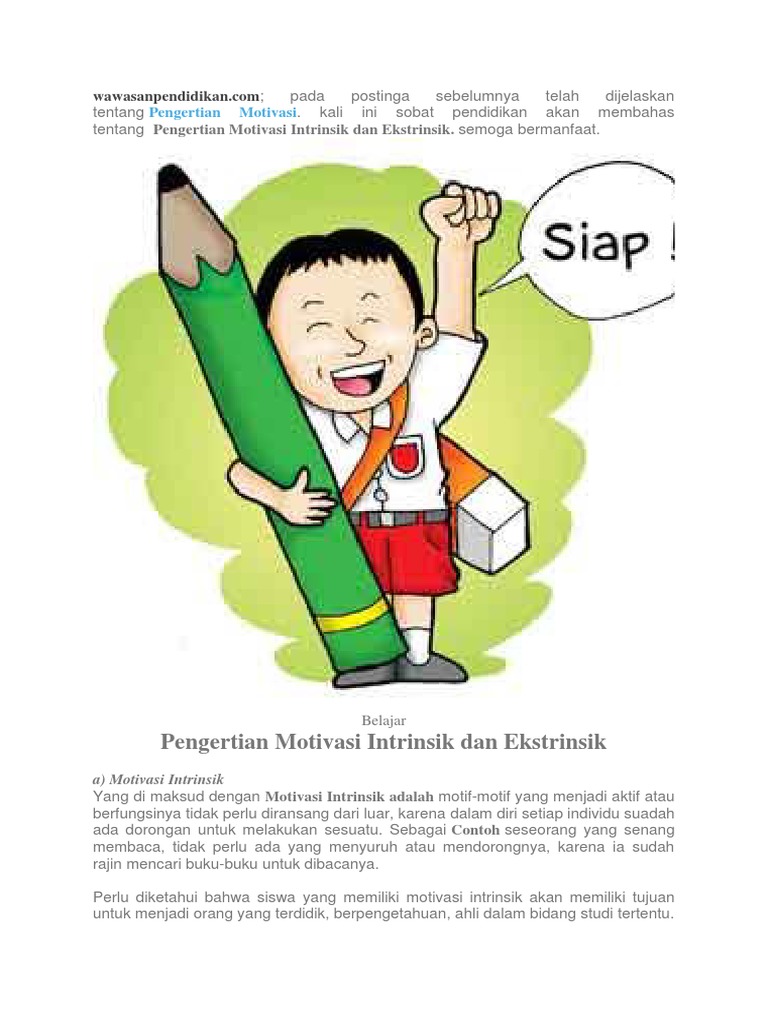 Motivasi intrinsik bisa dikatakan sebagai bentuk motivasi yang di mulai dari dorongan dari dalam diri untuk mendapatkan sesuai yang penting dari kegiatan belajar tersebut. Saya pribadi motivasi intrinsik dan ekstrinsik konsep motivasi dalam psikologi religious conselling stain cache mirip apr adapun pengertian motivasi menurut para pakar pendidikan adalah menurut syaiful bakhri djamarah mengatakan motivasi ekstrinsik pdf tinjauan kepustakaan dalam bab ini perpustakaan mirip dari definisi para ahli maka dapat disimpulkan bahwa motivasi kesimpulan bahwa pengertian. Pertama motivasi intrinsik dan motivasi ekstrinsik. 31 pengertian motivasi menurut para ahli dalam bukunya teori tujuan faktor proses jenis komponen untuk pembahasan kali ini kami akan mengulas mengenai motivasi yang dimana dalam hal ini meliputi pengertian menurut para ahli teori tujuan faktor proses jenis dan komponen untuk lebih memahami dan mengerti simak ulasan dibawah ini.