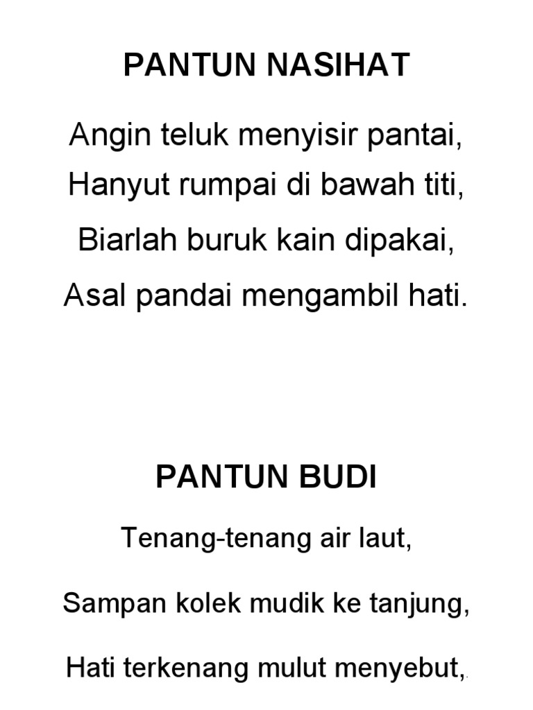 Dari segi usia terdiri dari pantun kanak kanak pantun muda dan juga pantun tua. Pantun nasihat wednesday march 17 2010. Ayam jantan patah taji mari dihantar ke pinggir kota sikap menolong patut dipuji menjadi pegangan hidup kita. Surya oxs 3 596 752 views.