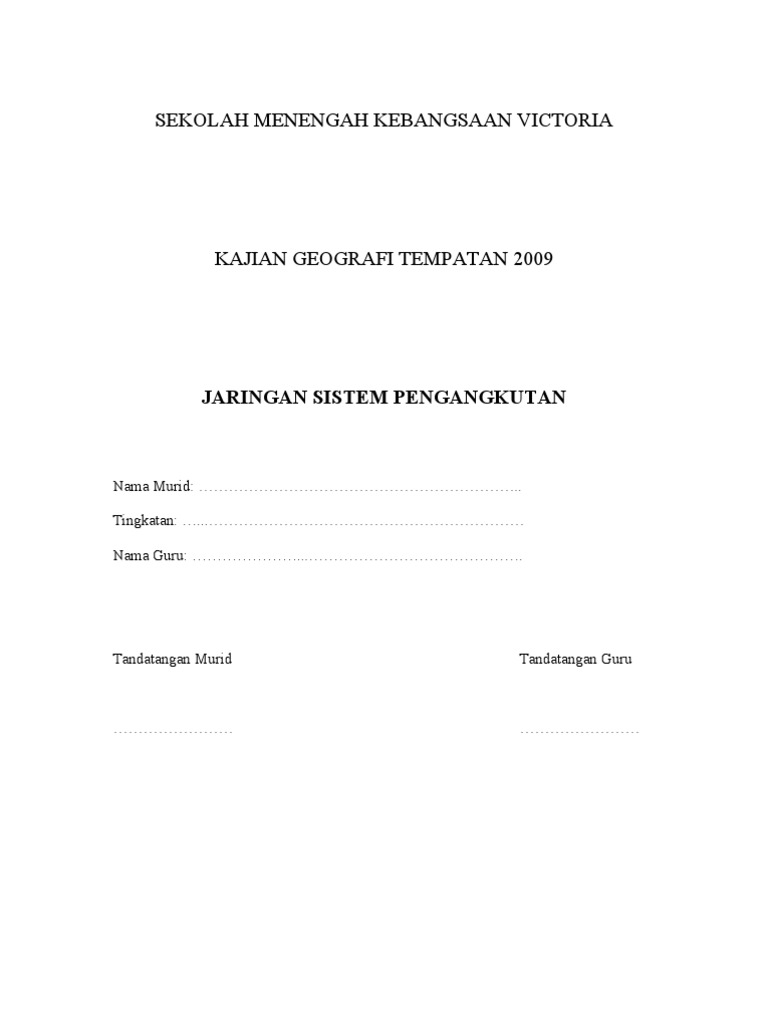 Berikut adalah contoh kerja kursus geografi pt3 sistem pengangkutan yang dapat dijadikan panduan dan rujukan kepada pelajar. Contoh folio kerja kursus geografi. Panduan kerja lapangan kerja lapangan kerja lapangan merupakan salah satu komponen yang sangat penting dalam kurikulum geografi. Syafiq bin kassim tingkatan 2 amanah.