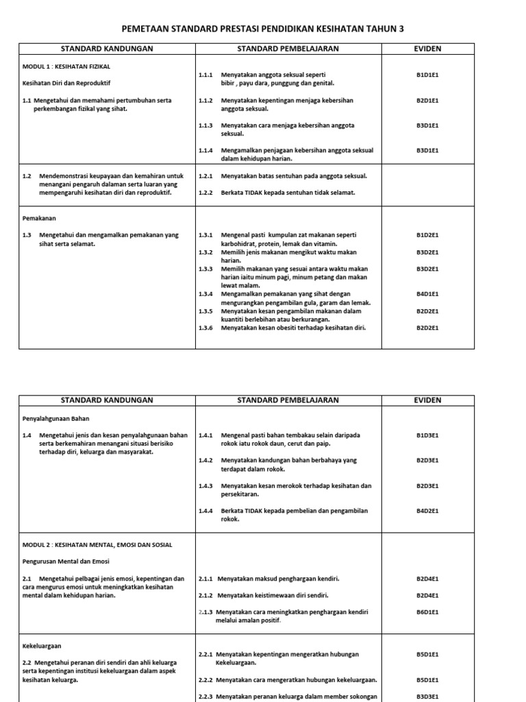 Standard pembelajaran 1 2 3 mengenal pasti individu yang mungkin melakukan sentuhan tidak selamat. 2 1 1 mengetahui sentuhan selamat sentuhan tidak selamat dan sentuhan tidak selesa. 7 1 penyakit dan cara mencegah serta mengurangkan faktor risiko. 2 sentuhan tidak selamat.