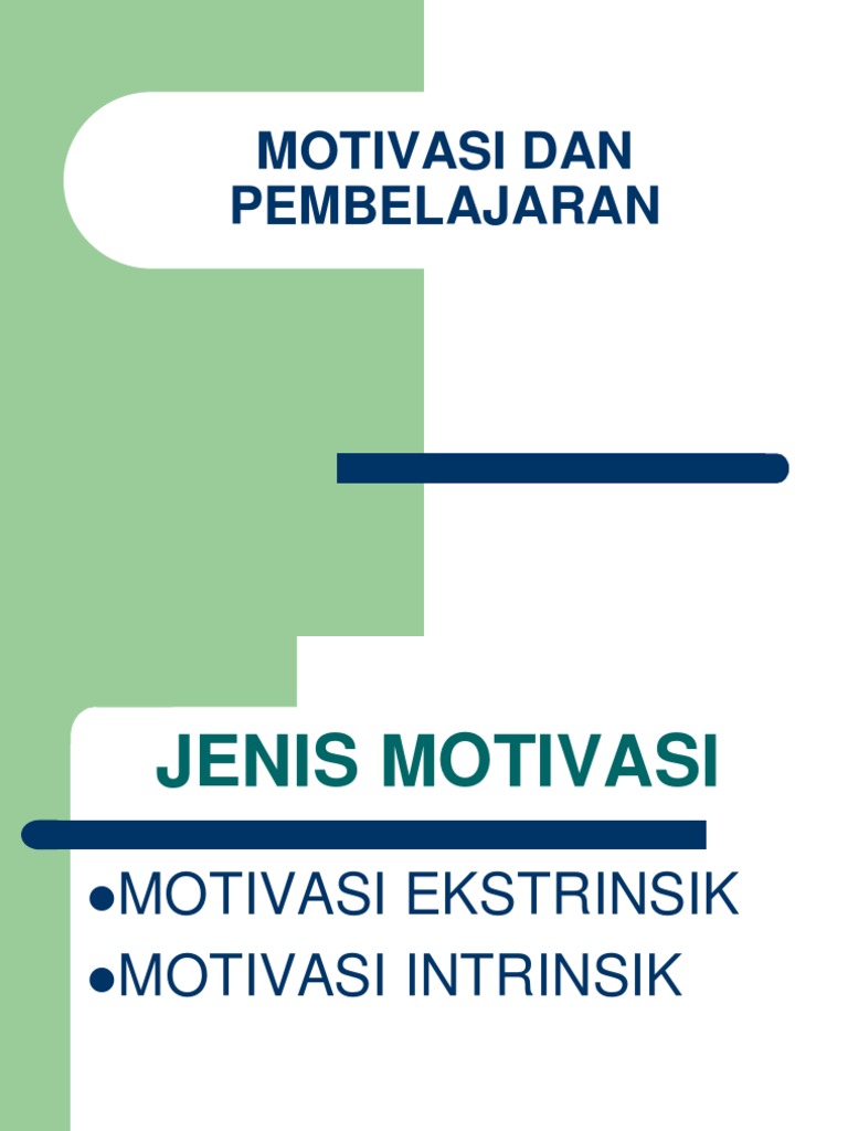 Namun secara umum terdapat dua jenis motivasi yakni motivasi intrinsik serta juga motivasi ekstrinsik.
