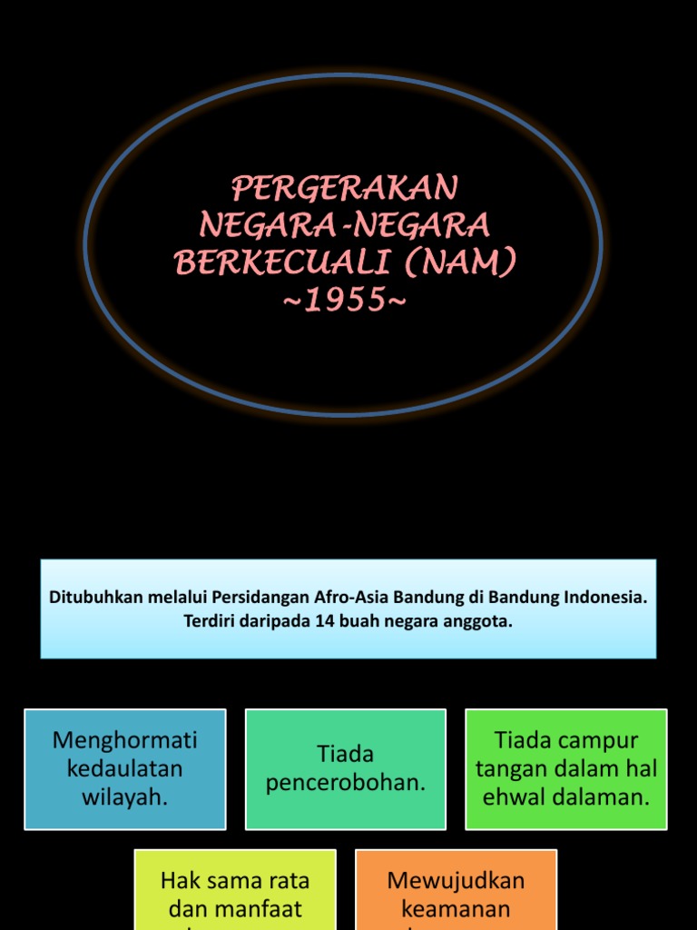Persidangan negara negara afro asia bandung dan penubuhan nam a negara berkecuali mengelak berpihak mana mana blok. Pergerakan negara negara berkecuali nam disediakan pn. Pergerakan negara negara berkecuali nam perbezaan dan persaingan ideologi antara blok barat diketuai amerika syarikat dengan blok timur diketuai bekas soviet union mencetuskan perang dingin pada 1950an. Perbezaan dan persaingan ideologi anatara blok barat diketuai amerika syarikat dengan blok timur diketuai bekas soviet union mencetuskan perang dingin pada 19 50an.