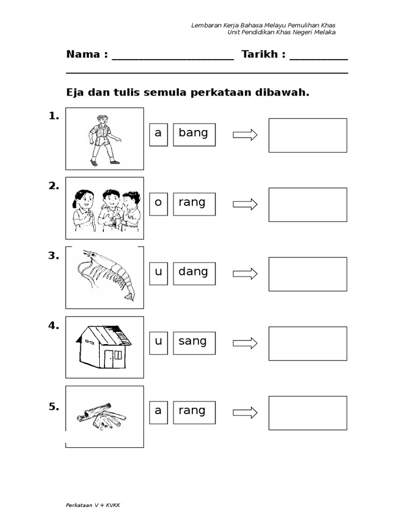 Perkataan lembaran kerja bahasa melayu pendidikan khas. Kemahiran 01 kemahiran 32 saiz modul. Perkataan yang melibatkan diftong dan vokal berganding arahan. Lembaran kerja perkataan kvkv ini terbahagi dua. Mari dapatkan lembaran kerja teka silang kata.