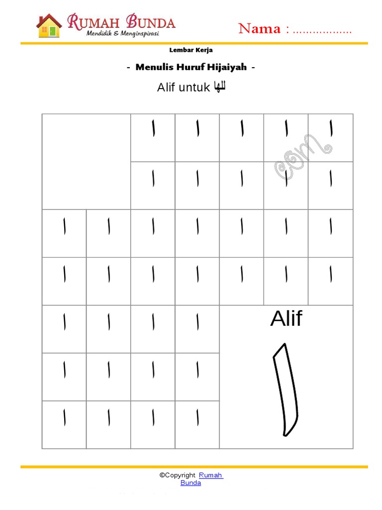 Menulis huruf hijaiyah alif jangan lupa untuk menginstall pdf reader terlebih dahulu jika anda belum memiliki pdf reader untuk dapat membaca file nya. Latihan menulis huruf jawi tunggal sesuai untuk murid pra dan tahun 1 juga boleh diberikan kepada murid tahun lain jika masih lemah dalam menulis dan mengenal huruf jawi. Worksheet arabic lagi kali ini ya. Lembar kerja yang terdiri dari 6 halaman berisi beberapa aktivitas untuk mengenalkan huruf tha ط.