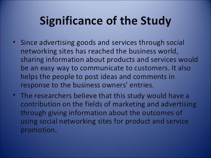Proposal Significance Of The Study Example