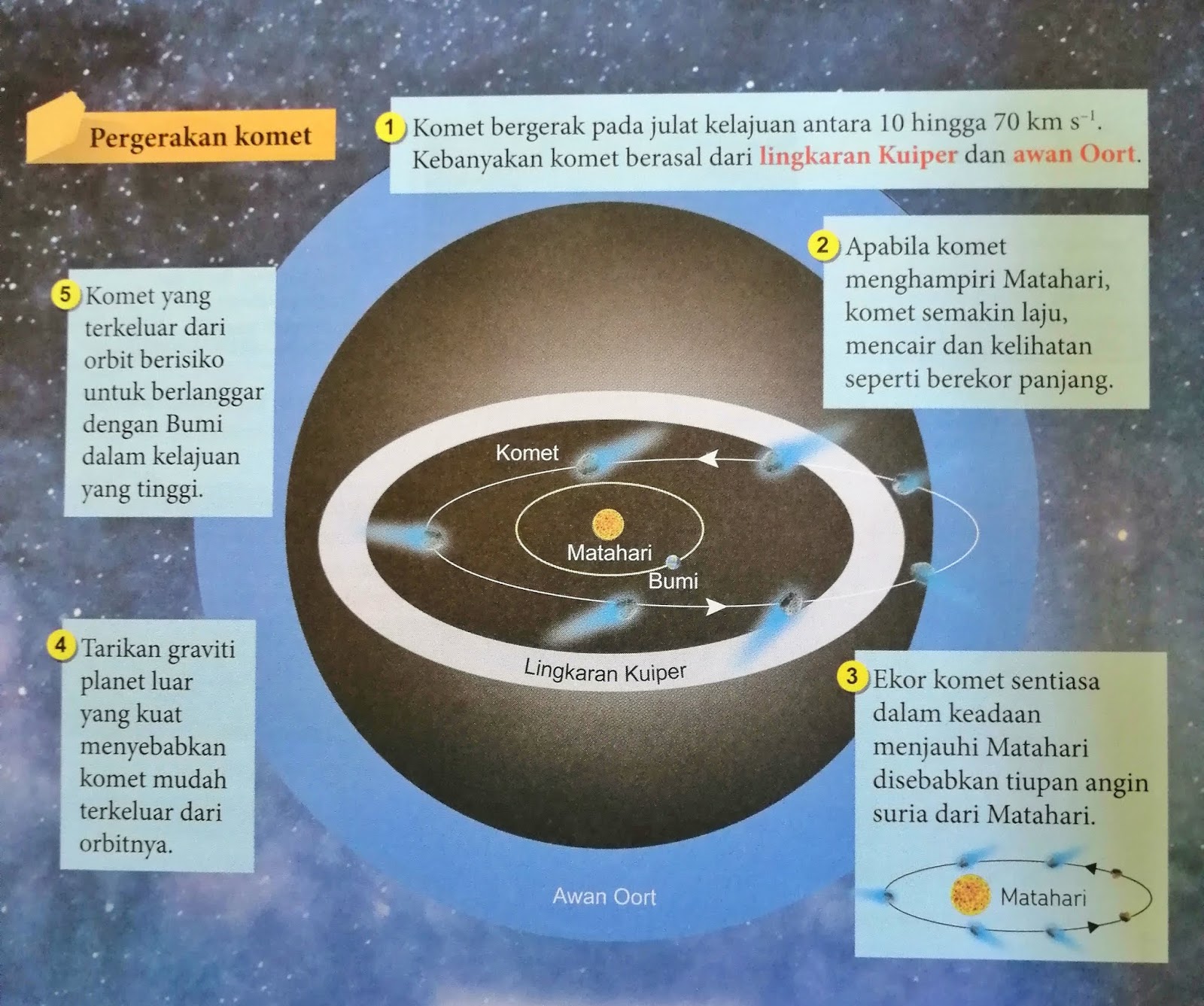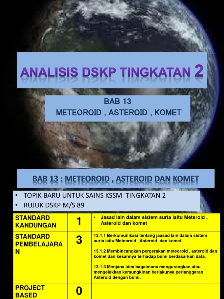 13 1 jasad lain dalam sistem suria iaitu meteoroid asteroid dan komet. Sains tingkatan 2 kssm bab 13. Sila tekan next untuk mula. Ekor komet pula boleh mencapai lebih 150 000 000 km 1 au panjang.