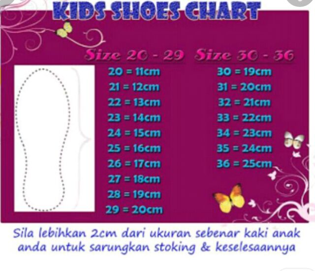Saiz Kasut Kanak Kanak Malaysia