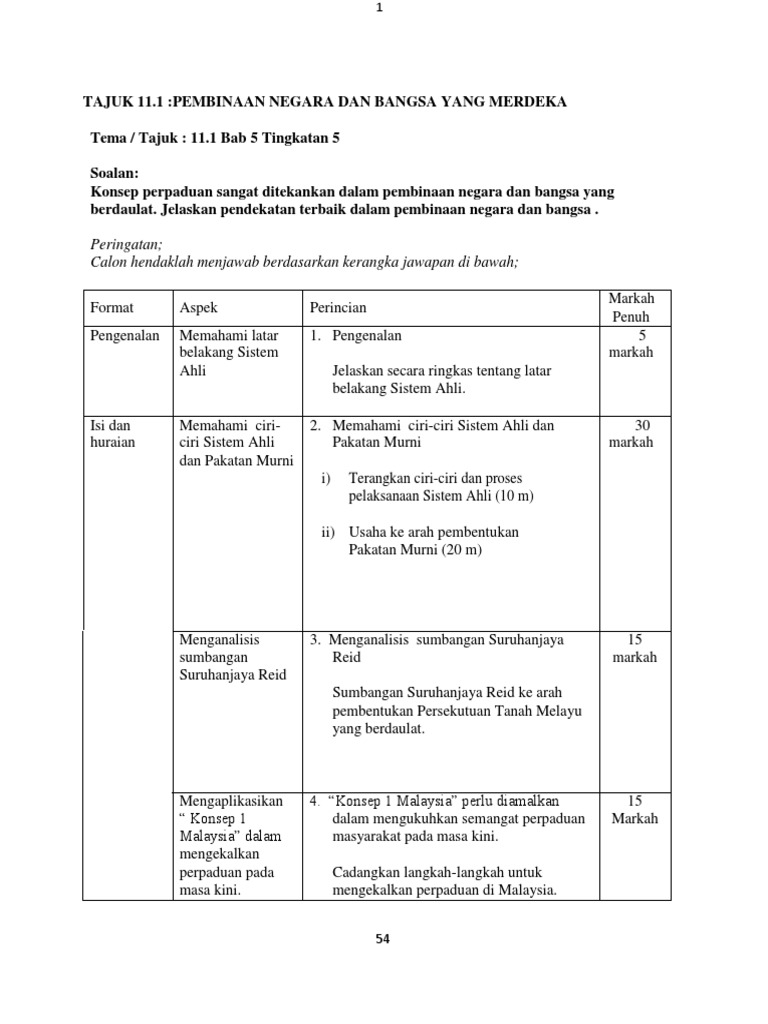 3 tajuk 10 1 kemunculan dan perkembangan nasionalisme di asia tenggara merujuk tema 10. Tema 11 pembinaan negara bangsa ke arah kemunculan negara malaysia berdaulat merujuk tema 11 huraian sukatan pelajaran dan buku teks sejarah tingkatan 5 bab 5 berdasarkan tajuk di atas calon dikehendaki melaksanakan tugasan berikut. Untuk rujukan pelajar dalam menjawab soalan kertas 3 sejarah spm berikut dikongsikan contoh soalan dan skema jawapan pembangunan dan perpaduan untuk kesejahteraan.