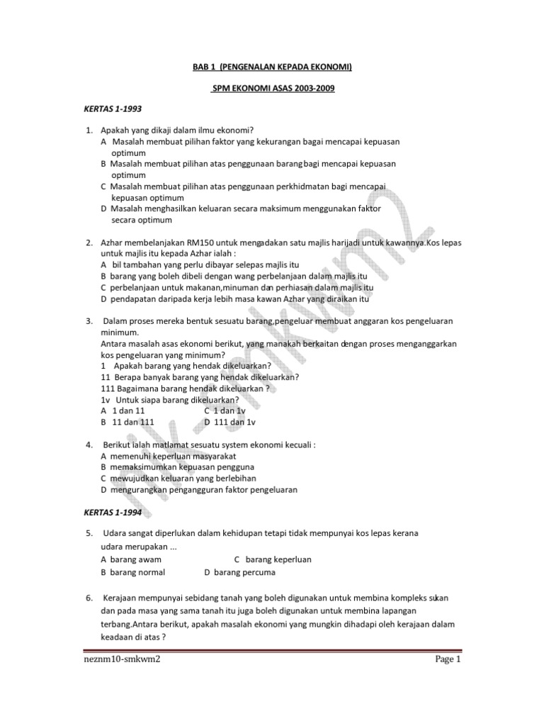 Ekonomi asas pengenalan kepada ekonomi 2. Jenis barang 1 2 masalah asas ekonomi 1 3 sistem ekonomi dan penyelesaian masalah asas ekonomi 3. Related posts to contoh soalan ekonomi tingkatan 4 bab 1 contoh soalan ekonomi tingkatan 4 bab 1 2019 04 22t19 51 00 07 00 rating. Bab1 tingkatan 4 ekonomi asas 1.