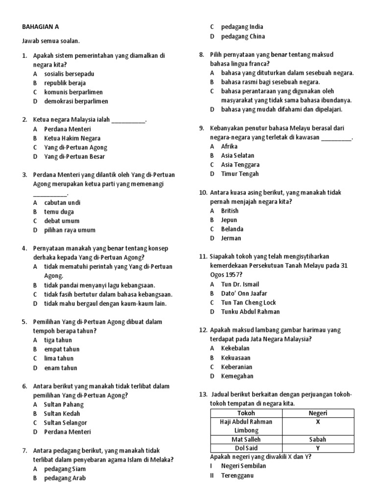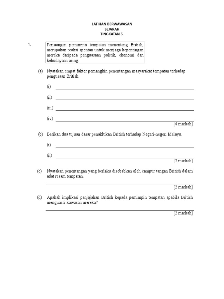 Soalan Sejarah Tahun 5 Perjuangan Tokoh Tempatan